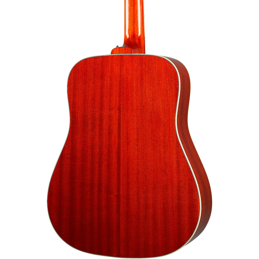 The classic cherry sunburst top on the Hummingbird is enhanced by an aged gloss finish, and the original art on its unmistakable pickguard is a feast for the eyes. Ivory and black binding on the back and top give the Hummingbird even more aesthetic appeal, along with the reverse-belly Indian laurel bridge with ivory pins. A crown headstock inlay is yet another detail that is a true tip of the cap to the original. Plus, deluxe tuners with press-in gold bushings look classy and keep you in tune.