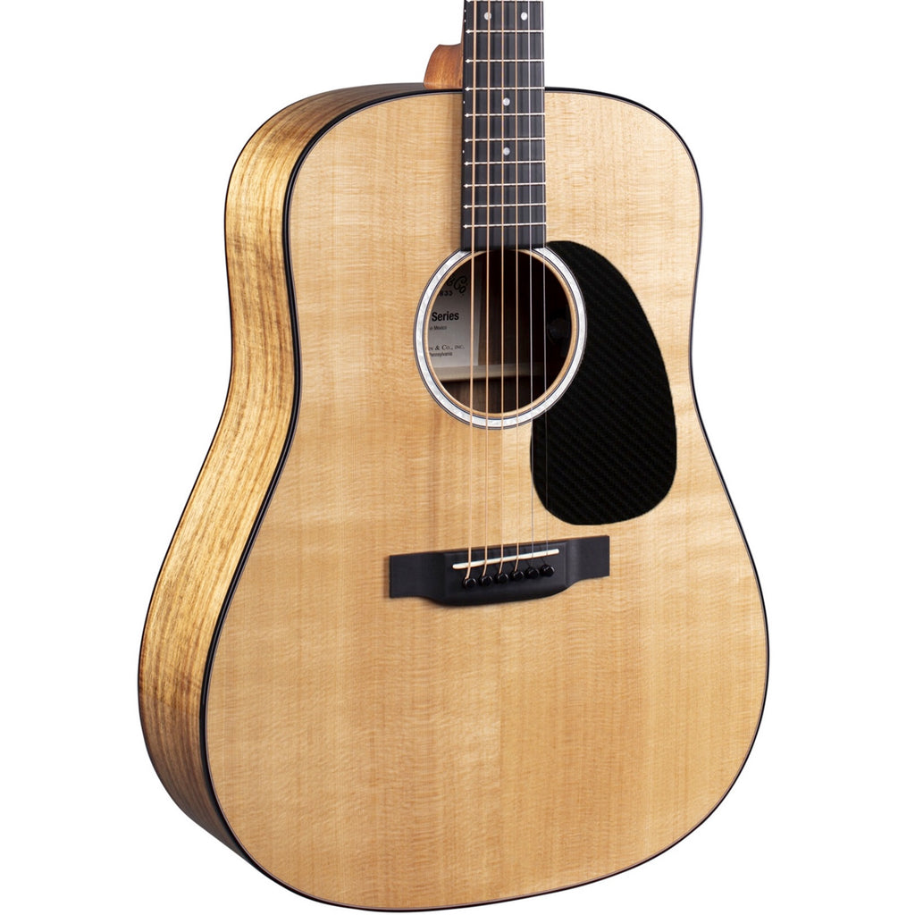 As a top tonewood, spruce's strength and elasticity provide a broad dynamic range and crisp articulation that are ideal for a wide range of playing styles, from delicate fingerpicking to aggressive flatpicked strumming. Exotic koa, used for the back and sides of the D-12E Koa, compares favorably to walnut and packs a tone that is sweet, clear, and refined. Together, these tonewoods give the D-12E Koa not only a one-of-a-kind Martin look, but a balanced sound that remains even across the audible spectrum.