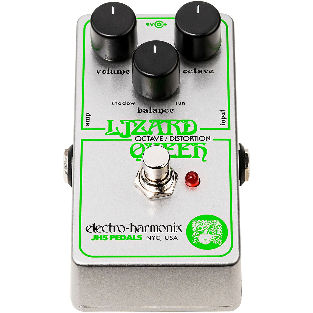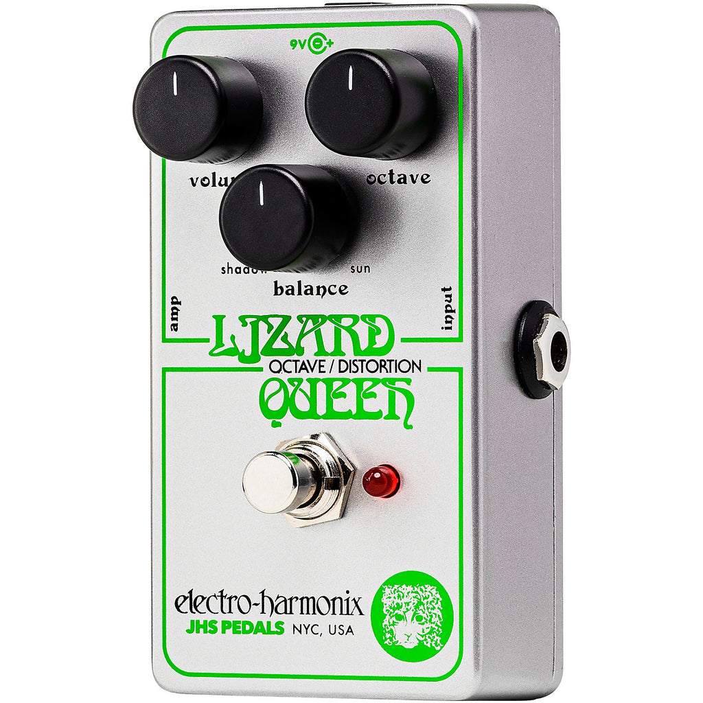 A collaboration between Electro-Harmonix, JHS Pedals, and acclaimed artist/illustrator Daniel Danger, the Lizard Queen is a fire-breather of an octave fuzz pedal straight out of EHX’s early ’70s golden age. The Lizard Queen has a fully blendable analog octave-up effect that will take you anywhere from a slight clang to maxed-out, vintage-octave madness. In lieu of a standard tone control, the Lizard Queen’s Balance knob features two distinct sonic voices at each end of the knob’s spectrum, functioning as a hybrid tone/gain control that unlocks myriad hard-clipped sounds to savor. The Lizard Queen pedal features a fixed-level fuzz circuit fine-tuned for maximum wall-of-sound might. For an idea that began life as a vintage-inspired daydream between JHS founder Josh Scott and Daniel Danger, the EHX Lizard Queen is truly a top-class octave fuzz pedal that’s earned its regal reptile status in the Electro-Harmonix pedal pantheon!