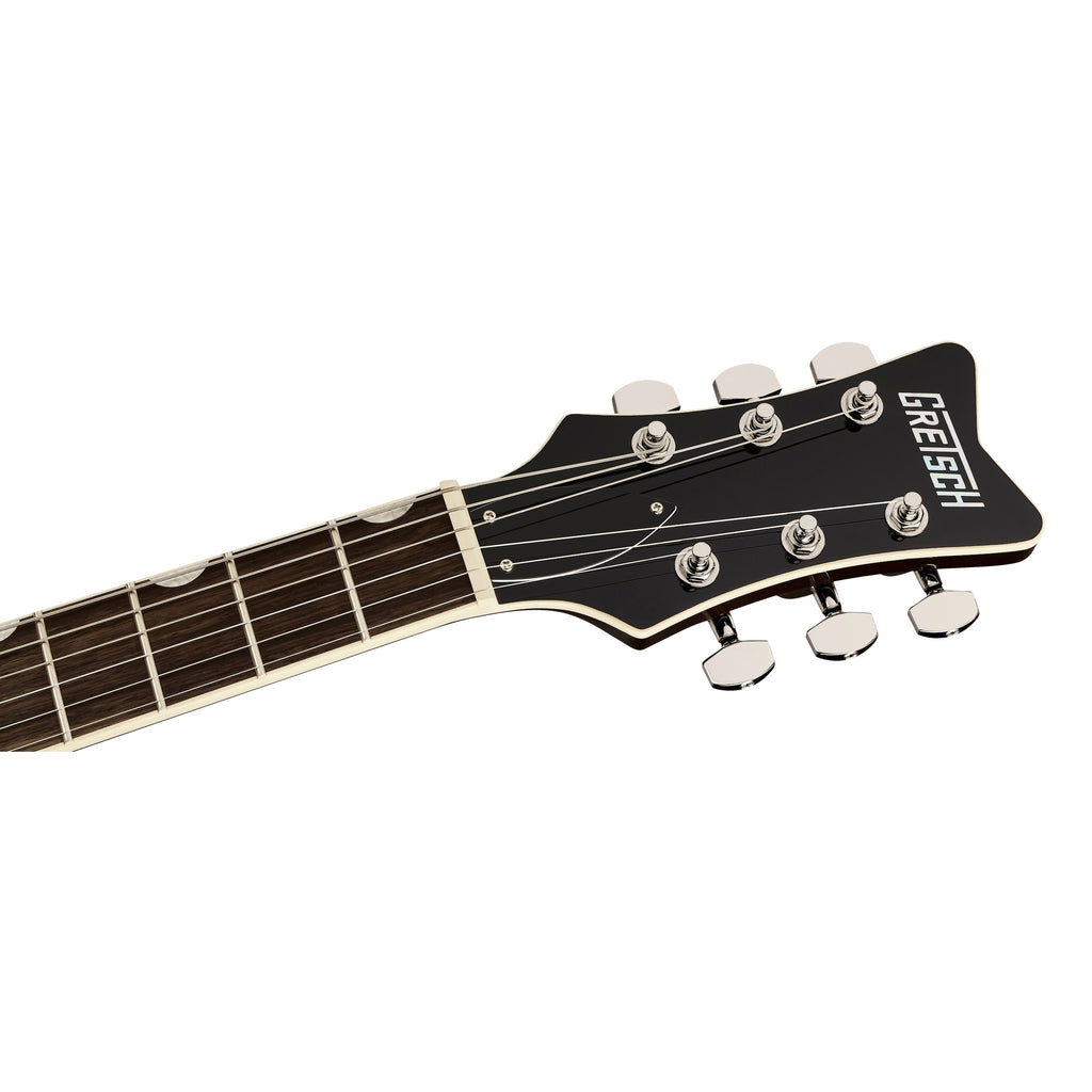 The wraparound and adjustable bridge of the Electromatic CVT pairs nicely with a set of sealed die-cast tuning machines up top to satisfy the playing styles of gentle pickers and high-intensity performers alike. Stylistic updates also spearhead the Electromatic CVT’s visual appeal, not the least of which are Gretsch’s iconic pearloid Neo-Classical thumbnail inlays and a redesigned Falcon-style headstock and 3-ply tortoiseshell pickguard. Rounded out with handsome nickel hardware finishing and Aged White binding across the fingerboard and headstock, the budget-friendly Electromatic CVT won’t let you forget that it’s still laden with that iconic Gretsch swagger!