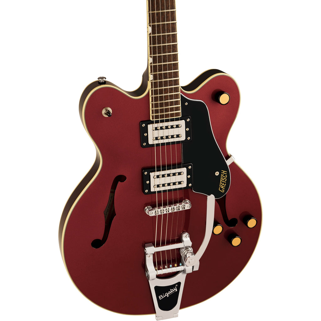 The G2622T Streamliner Center Block Double-Cut is here to make all of your Gretsch dreams come true without the burden of a pro price tag. This impeccably designed guitar packs in classic Gretsch appointments, a warm and resonant 16-inch-wide semi-hollow body, and a Bigsby B70 bar for superb vibrato action. Its body flaunts a laminated maple top, back, and sides for warm and bright natural tone. In addition, the nato neck and laurel fingerboard with soft C neck shape and 12-inch radius set you up for exceptional playing comfort every time you pick this 6-string up to play. Rounded out with a pair of bold and well-balanced Broad’Tron BT-3S humbucking pickups that can be coil-split by pulling the volume control, the versatile G2622T Streamliner is ready to record, jam, and take to every stage with confidence!
