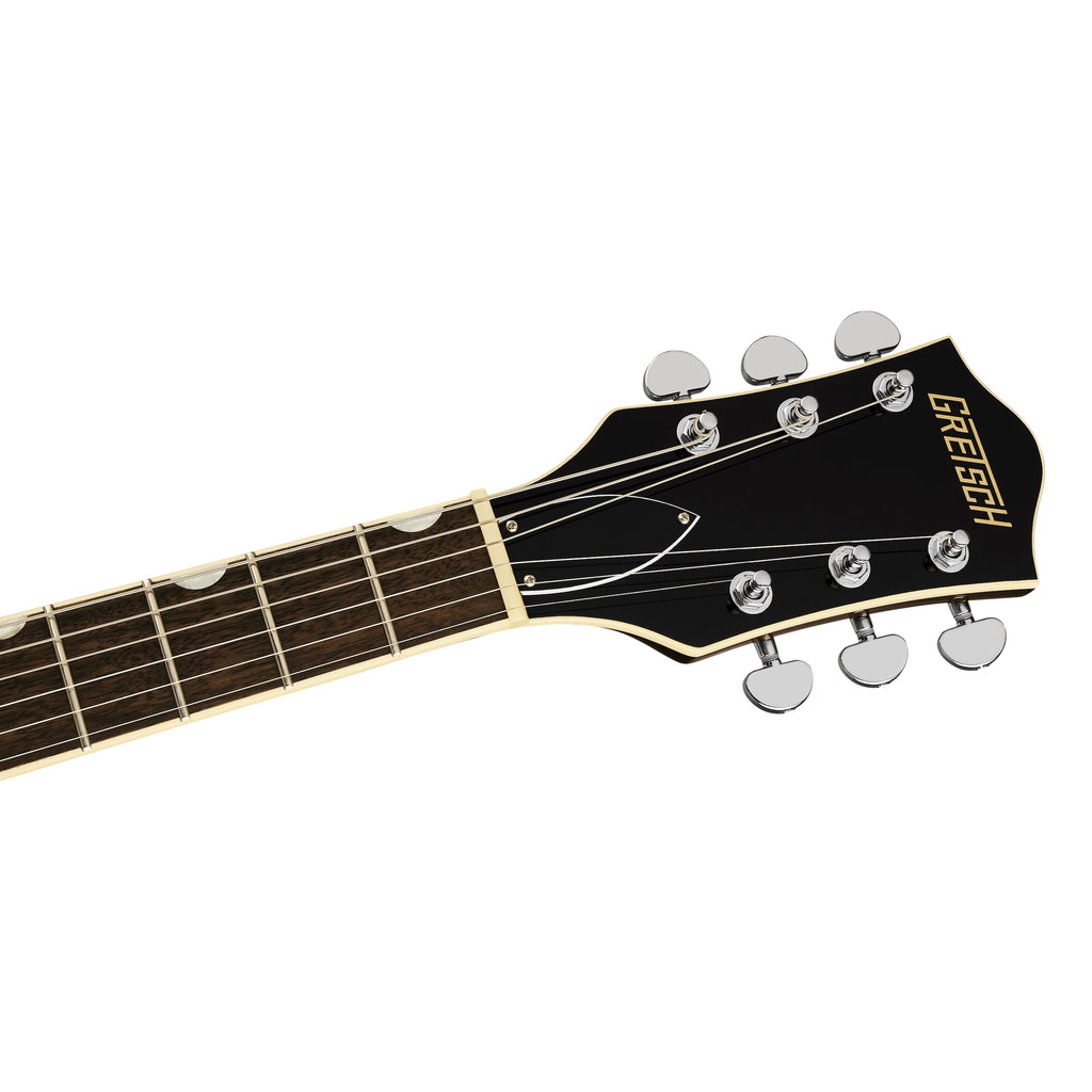 You get a lot of tonal bang for your buck with the G2622T Streamliner, thanks to its long center block. Running the full length of the body, the center block allows the otherwise hollow body to resist resonant-frequency feedback. At Music Experience, we’ve found that this weight-relieved center block lets us rock out louder, with more gain, without our amplifier squealing out of control.