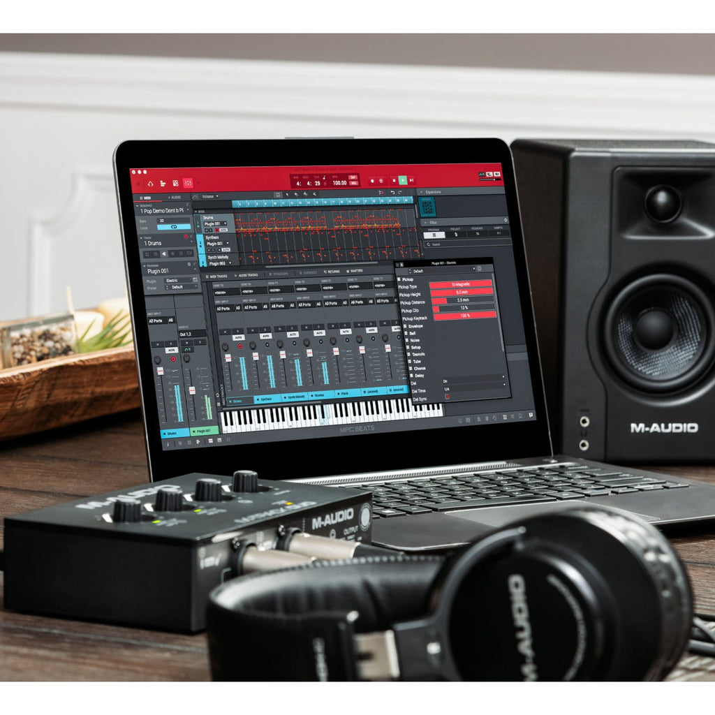 M-Track Duo includes bundled software so you can start making music right off the bat. You get two DAWs for tracking, mixing, and mastering; Pro Tools | First M-Audio Edition and MPC Beats. You'll love how quickly and easily MPC Beats helps you dial in great-sounding beats for your next project. You also get 20 plug-ins from Avid, the company behind Pro Tools. Finally, Xpand!2 and Eleven Lite offer capable virtual synthesis and amp emulation. In short, the M-Track Duo has enough software to fit the needs of any creator.