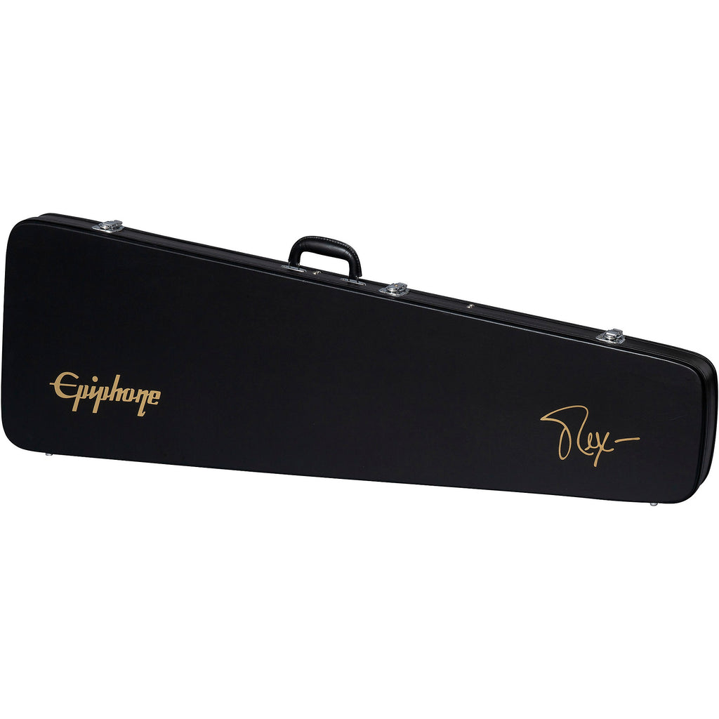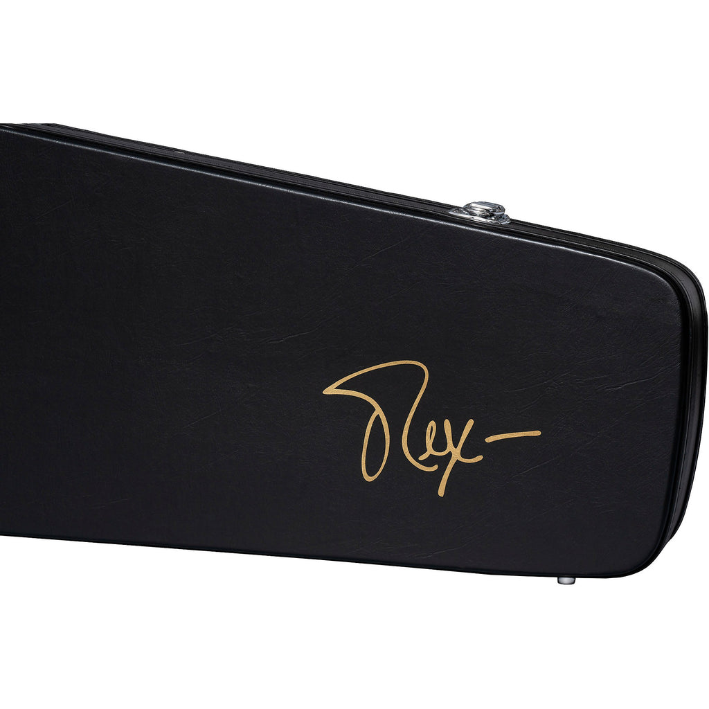 Multi-instrumentalist Rex Brown is famous for his work with legendary metal bands Pantera and Down, and his hard-rocking solo album, Smoke on This… Epiphone is proud to release the first Epiphone Rex Brown signature model in partnership with the legendary musician. The Epiphone Rex Brown Thunderbird™ Bass features a 9-ply neck-through-body mahogany and walnut neck with a C-shape profile, mahogany body wings, and a standard 34” scale length. It is powered by a pair of Epiphone ProBucker™ 760 bass pickups, which feature nickel covers that complement the otherwise all-gold hardware. The passive electronics have two volume controls and a master tone control that feature smooth CTS® potentiometers. The gold pickguard bears the famous Thunderbird logo, and on the back of the headstock, Rex’s signature is reproduced, while the rear control cover features a Rex Brown logo doodle. A hardshell case is also included.