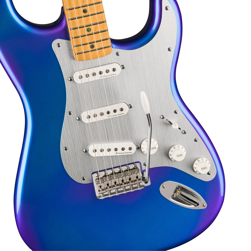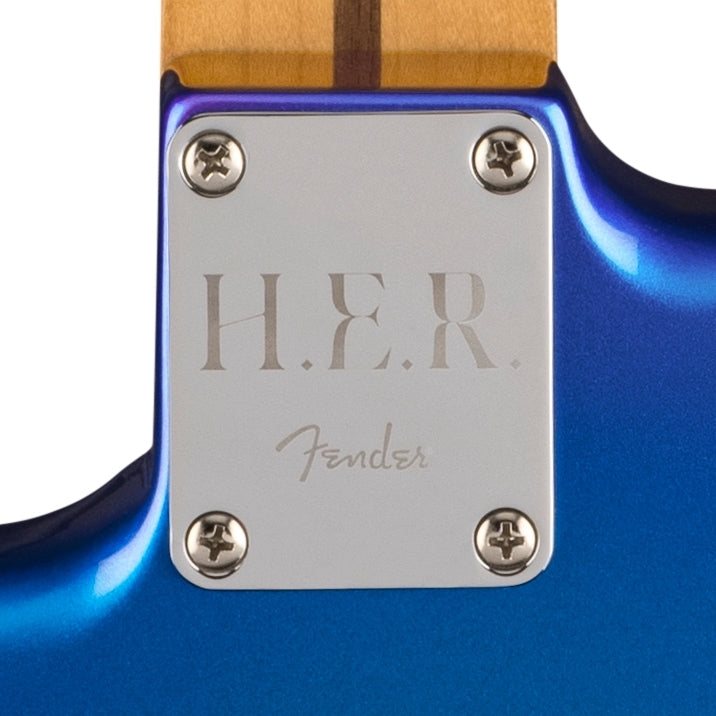 Dynamic R&B performer H.E.R. has wooed audiences and earned Grammys with her powerful performances and emotional songs – her smooth rhythms and slow-burning solos always at the forefront. The H.E.R. Stratocaster makes a statement as bold as the artist who inspired it. Finished in dazzling Chrome Glow and featuring a mid-‘60s “C” shape maple neck, Vintage Noiseless™ pickups and an anodized aluminum pickguard, this guitar delivers effortless playability, classic Strat® tone and extraordinary good looks.