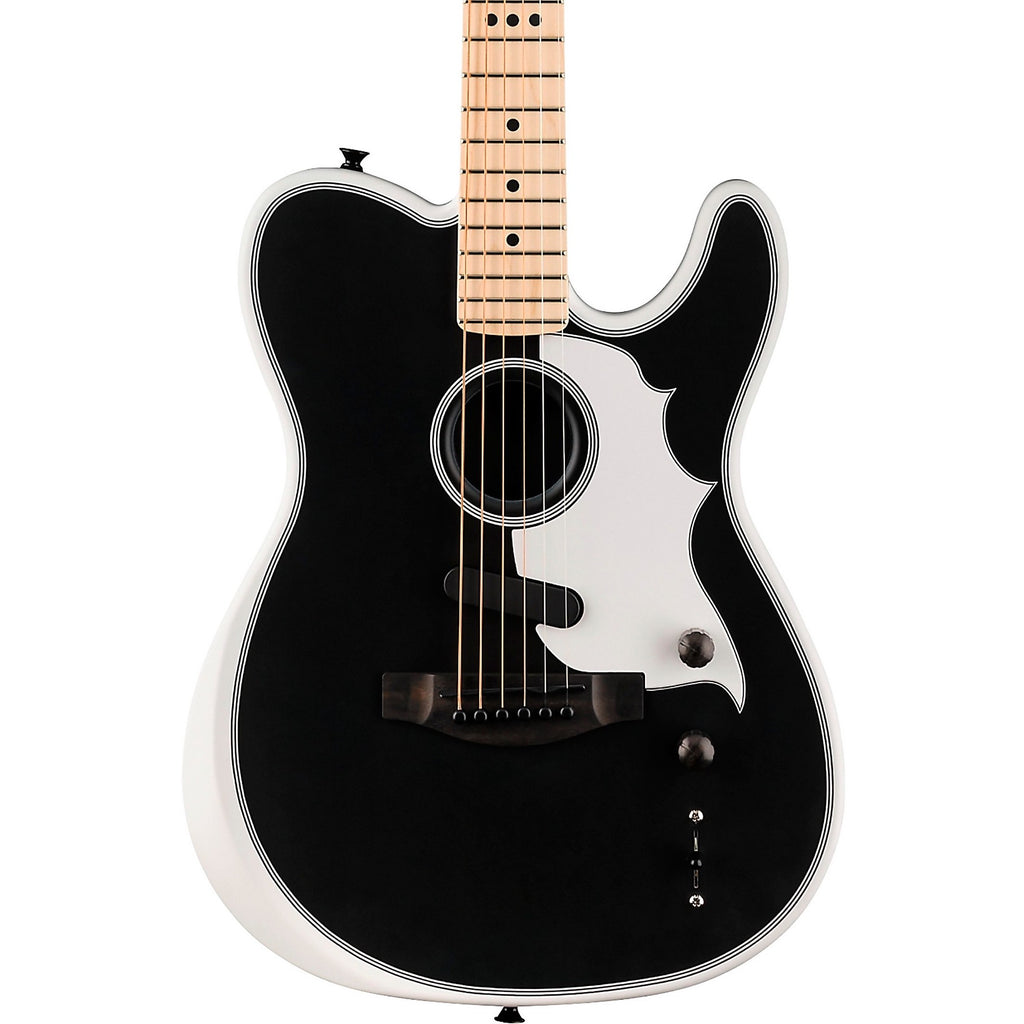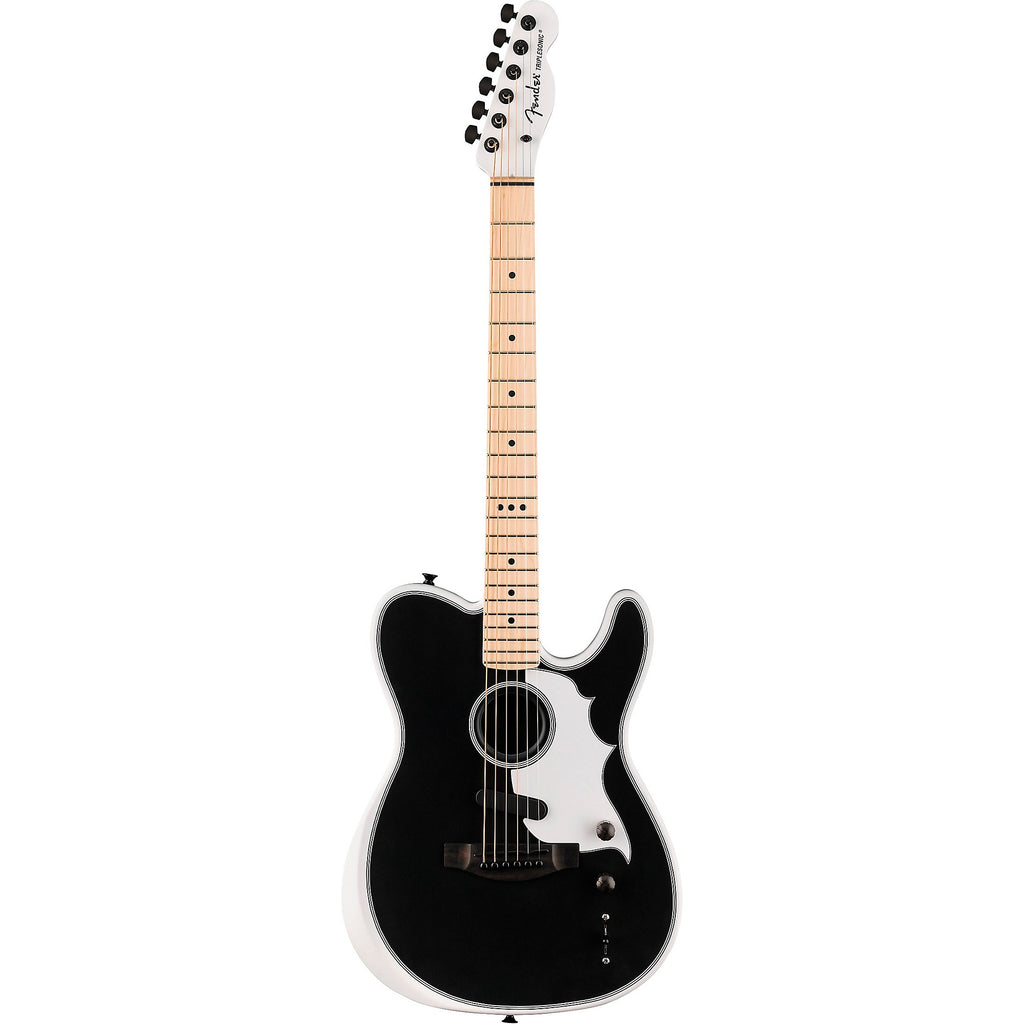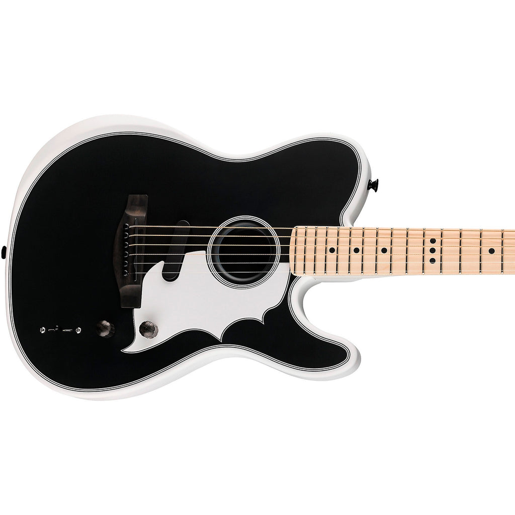 The Triplesonic Acoustasonic Tele features an Arctic White painted neck and body with black finish on the top that extends into the soundhole for a sleek, premium look..