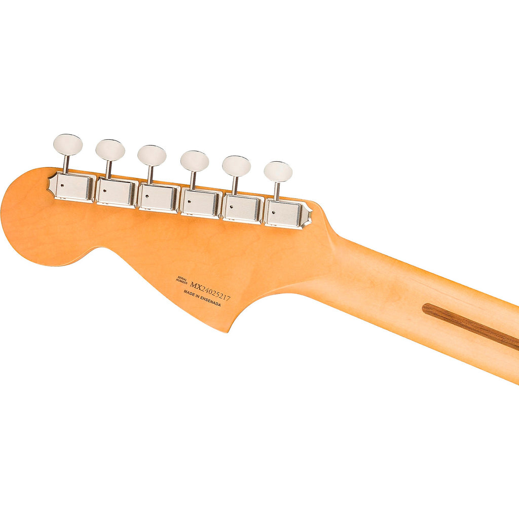 Step into the spotlight and experience iconic Fender® sound and style with the Player II Jaguar® — a stage-ready guitar with contemporary updates to power your performance and inspire your playing. The Player II Jaguar radiates timeless Fender charm, but under the hood, it's primed for today's players. Everything about the neck is designed for fast and fluid playability, from the Modern “C”-profile with silky satin urethane finish on the back to the comfy 9.5”-radius slab rosewood with smooth rolled edges and 22 medium jumbo frets. A classic alder body is available in both timeless Fender finishes and never-before-seen colors unearthed from the archives. Player Series Alnico V (Bridge) and Alnico II (Neck) Single-Coil Jaguar pickups offer crystalline highs, musical mids and tight lows that elevate any genre. The 3-way blade switch lets you easily dial in everything from glassy neck pickup chime to cutting bridge pickup bite and all points in between, while a 6-saddle Jaguar bridge with Floating Tremolo, upgraded Mustang® saddles and ClassicGear™ tuners ensure precise tuning stability for the flexibility to explore endless sonic possibilities. Perfect for crafting your own sound, the Player II Jaguar has the looks, tone and feel that only a Fender delivers.