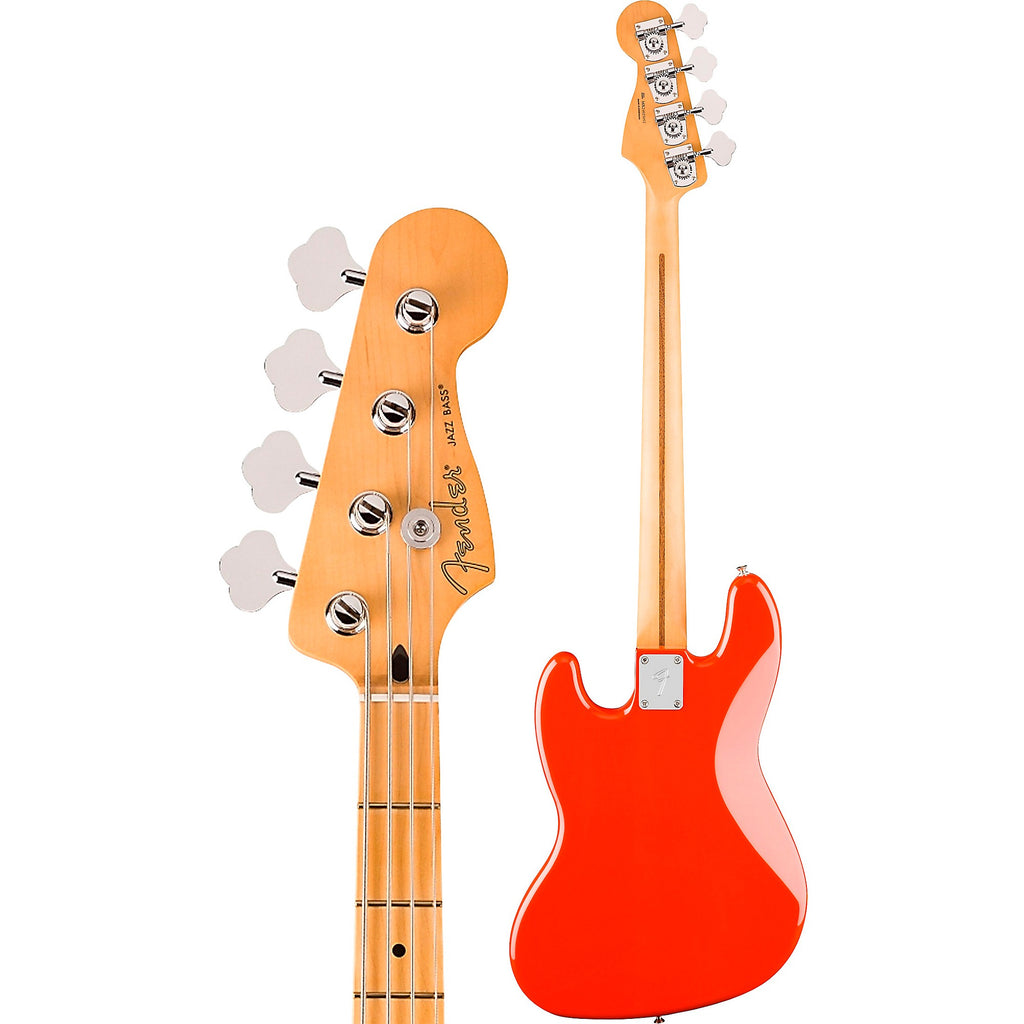 Step into the spotlight and experience iconic Fender® sound and style with the Player II Jazz Bass® — a stage-ready bass guitar with contemporary updates to power your performance and inspire your playing. The Player II Jazz Bass radiates timeless Fender charm, but under the hood, it's primed for today's players. Everything about the neck is designed for fast and fluid playability, from the Modern “C”-profile with silky satin urethane finish on the back to the comfy 9.5”-radius slab rosewood or maple fingerboard with smooth rolled edges and 20 medium jumbo frets. A classic alder body is available in both timeless Fender finishes and never-before-seen colors unearthed from the archives. Player Series Alnico V Single-Coil J bass® pickups offer sweet highs, growling mids and seismic lows that elevate any genre. An adjustable 4-saddle bridge, single-groove steel saddles and open-gear tuners ensure precise tuning stability for the flexibility to explore endless sonic possibilities. Perfect for crafting your own sound, the Player II Jazz Bass has the looks, tone and feel that only a Fender delivers.