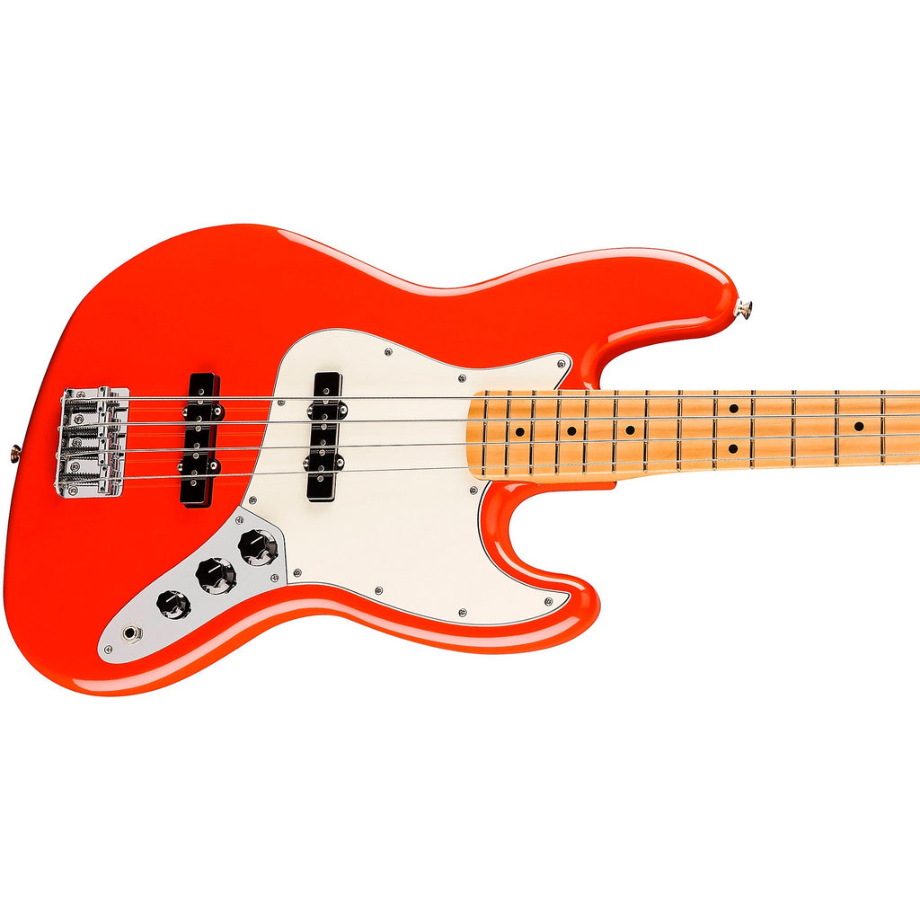 The Fender Jazz Bass is one of the most widely used bass guitars in history. Since its debut, the Jazz Bass has won legions of fans due to its characteristic growl, slim and comfortable neck, and comfortably contoured body. The Fender Player II Jazz Bass doubles down on these classic earmarks while ensuring the bass can withstand the requirements of modern-day players. The Player II J Bass packages a contoured alder body, a Modern “C” maple neck, and a 9.5-inch-radius maple fingerboard for a bass that feels superb to play. Standard open-gear tuners, a vintage-style disc string tree, a synthetic bone nut, and a 4-saddle standard bridge hold down the intonation for trustworthy tuning stability. Lastly, the hardware is finished with chrome for a striking look that harkens back to the J Bass’s inception while keeping eyes toward the future. After all, one thing’s for sure: the Jazz Bass never goes out of style!