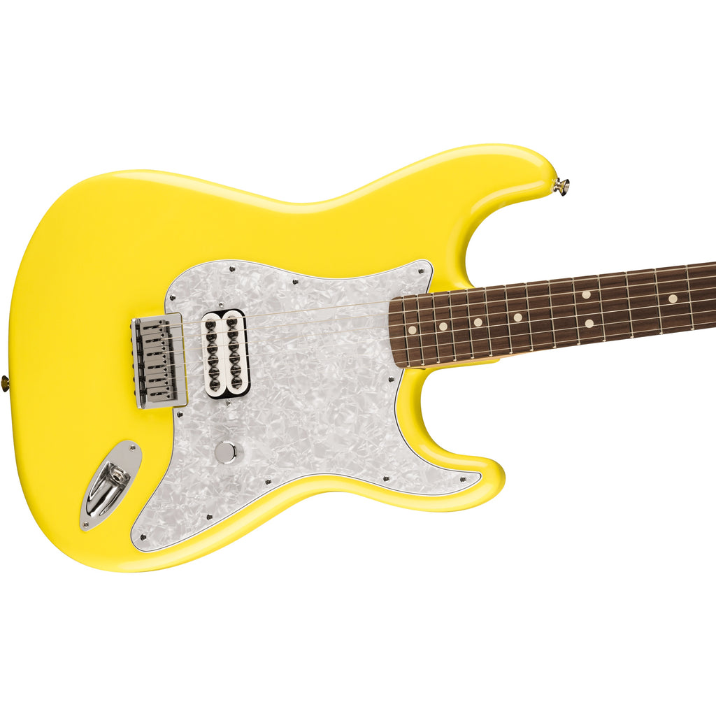 Blink-182 guitarist Tom DeLonge has teamed up with Fender once again to release The Tom DeLonge Stratocaster®. This iconic Strat® makes a comeback just in time for Blink's reunion tour and the much-anticipated release of their latest album. The Tom DeLonge Stratocaster boasts a Seymour Duncan® Invader™ humbucker for immense output and turbo-charged tone that’s perfect for chunky power chords and crunchy riffs. But it's not all about power—the streamlined control setup consisting of a single master volume combined with a treble bleed circuit preserves the guitar’s natural high-end, ensuring sparkly cleans and chime-y edge-of-breakup tones. The comfy modern "C" neck features medium jumbo frets on a 9.5" radius rosewood fingerboard for a modern feel with superior playability. Other highlights include vintage-style tuners and hardtail Stratocaster bridge with block saddles for classic looks, superior intonation and enhanced tuning stability. A custom crafted Tom DeLonge neck plate is decorated with DeLonge's original artwork. Whether you're a Blink-182 fan looking to bottle the band's signature sound, or simply seeking a unique instrument that packs a knockout punch, the Tom DeLonge Stratocaster is a must-have addition to any collection.