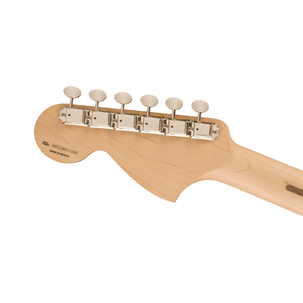 The Fender Tom DeLonge Stratocaster’s maple neck comes equipped with a slim and fast-playing Modern “C” profile that’s sure to please players of all backgrounds and styles. It’s an ideal crossroads between the chunky Fender neck profiles of yesteryear and modern ultra-high-performance toothpick profiles, giving you a perfect grip that precisely hits the “just-right” mark for many modern players. The slab rosewood fingerboard is loaded with an equally accommodating setup of 21 medium-jumbo frets in a 9.5-inch radius — a formidable combo that provides effortless chording at the base of the neck and an equally comfortable feel when bending up high.