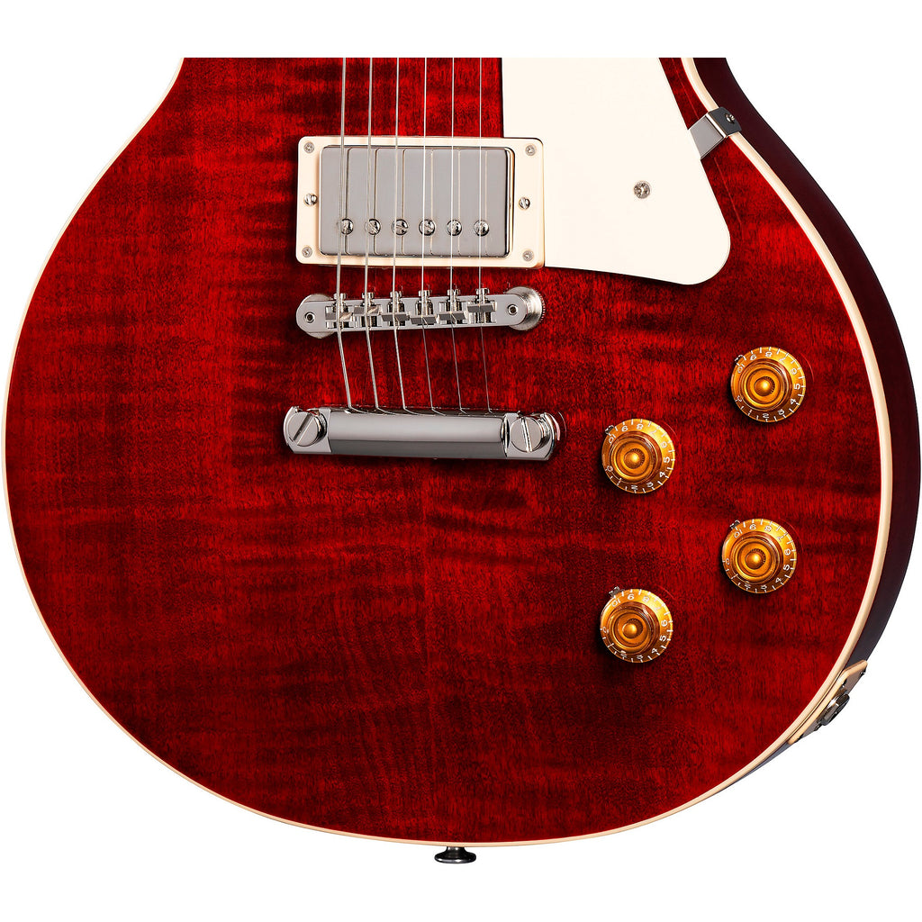 Inspired by the legendary Les Pauls of the late 1950s, Gibson’s Les Paul Standard ’50s Figured Top delivers all the best of golden-era Gibson tones, looks, and vibe. This guitar’s mahogany body and AA figured maple top deliver a one-two sonic punch of warmth and clarity, marked by the mammoth sustain that’s defined the Les Paul since 1952. Under the hood, two Burstbucker pickups brim with an open, airy, and dynamic PAF-style punch. Fans of a chunky neck will be sure to appreciate the old-school chunk of the mahogany neck’s ’50s Vintage profile, while the 12-inch-radius Indian rosewood fingerboard’s 22 frets are Plek’d to perfection. A thin nitrocellulose finish completes the package, allowing your guitar gracefully age and develop over time — just like Gibson’s original 1950s Les Pauls!