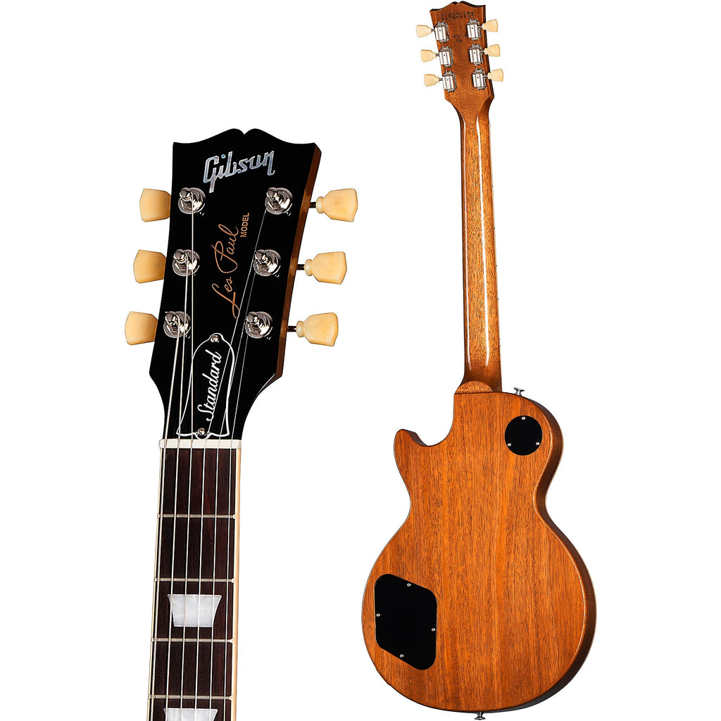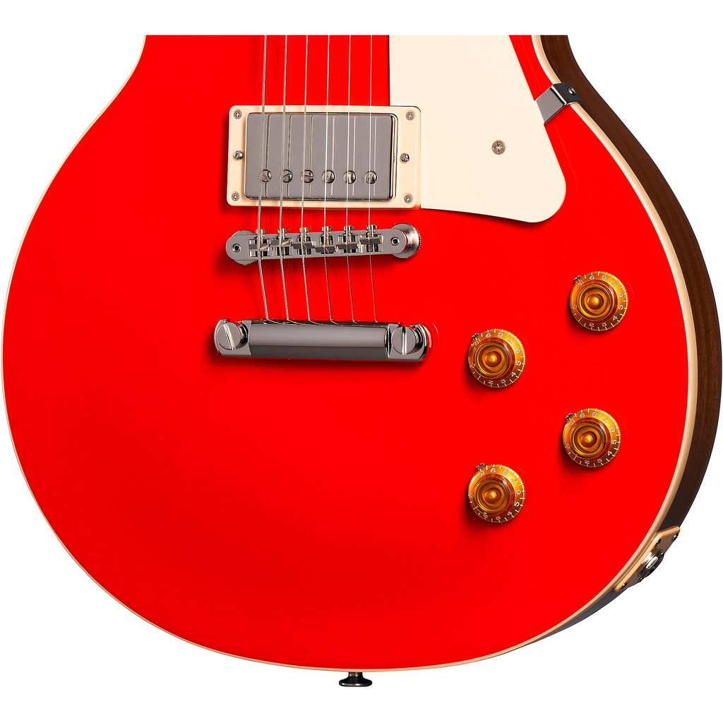 The new Les Paul Standard 50s Plain Top returns to the classic design that made it relevant, played, and loved – shaping sound across generations and genres of music. It pays tribute to Gibson's Golden Era of Innovation and brings authenticity back to life. The Les Paul Standard 50s Plain Top has a solid mahogany body that delivers warmth and sustain, while the bound, carved, plain maple top provides a bit of additional brightness, bite, and note definition to the classic Les Paul tonal formula. The Les Paul Standard 50s Plain top has a mahogany neck with a rounded, 50s Vintage profile that feels wonderfully substantial in your hands without being too beefy or clubby and is topped with a bound rosewood fretboard and acrylic trapezoid inlays. The 12" fretboard radius is "just right," whether you're strumming first-position chords or laying down a blistering solo with lots of string bends further up the neck. The Les Paul Standard 50s Plain Top is equipped with an ABR-1, the classic-style fully-adjustable Tune-O-Matic™ bridge for excellent intonation, an aluminum Stop Bar tailpiece that is mounted directly to the body for outstanding sustain, Vintage Deluxe tuners with Keystone buttons for a classic visual appearance, which together with the Graph Tech® nut deliver rock-solid tuning stability, and gold Top Hat knobs. The Burstbucker™ 1 (neck) and Burstbucker 2 (bridge) humbucker™ pickups sound fantastic for everything from crystal-clean tones to heavily distorted ones and help keep annoying hum at bay. They are loaded with Alnico 2 magnets and wired to individual volume and tone controls with audio taper potentiometers and Orange Drop™ capacitors. Now available in vivid custom colors, a hardshell case to keep your investment safe when traveling completes the package.