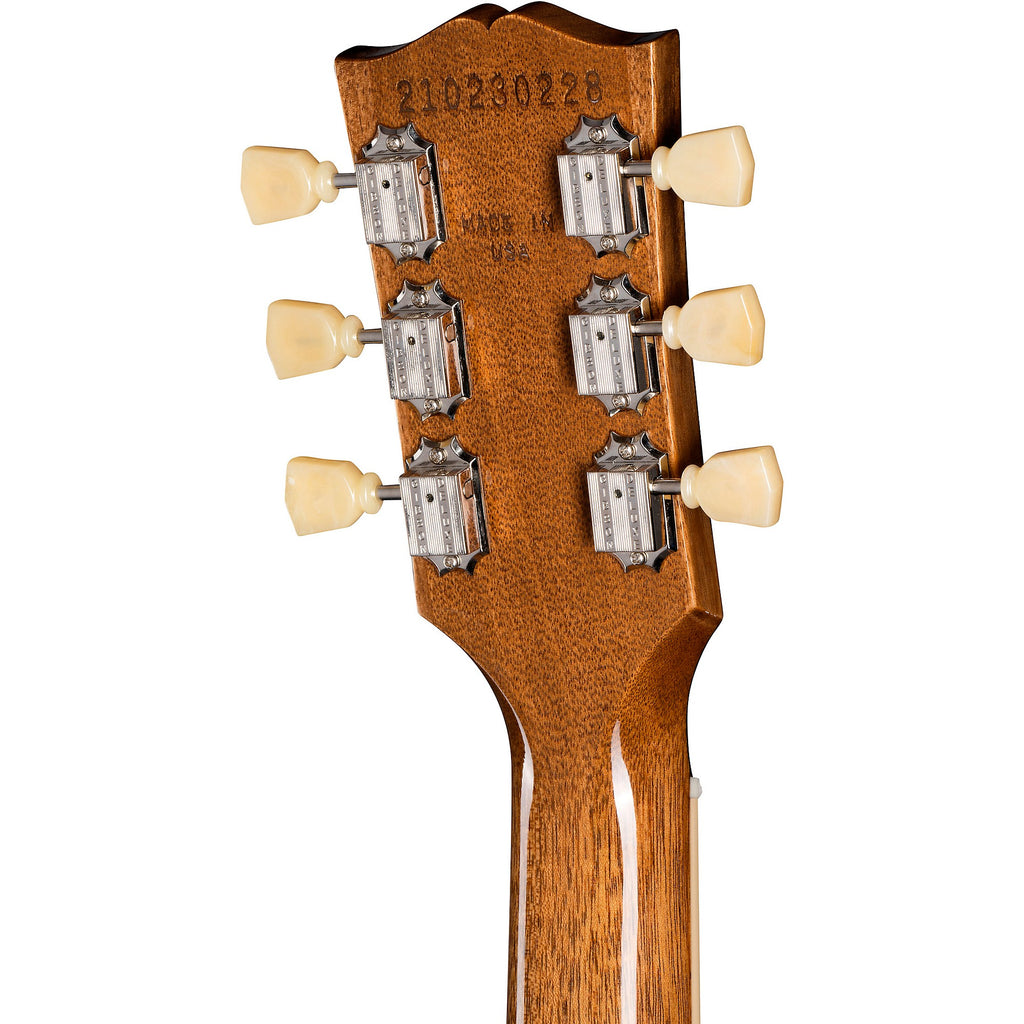 The new Les Paul Standard 50s Plain Top returns to the classic design that made it relevant, played, and loved – shaping sound across generations and genres of music. It pays tribute to Gibson's Golden Era of Innovation and brings authenticity back to life. The Les Paul Standard 50s Plain Top has a solid mahogany body that delivers warmth and sustain, while the bound, carved, plain maple top provides a bit of additional brightness, bite, and note definition to the classic Les Paul tonal formula. The Les Paul Standard 50s Plain top has a mahogany neck with a rounded, 50s Vintage profile that feels wonderfully substantial in your hands without being too beefy or clubby and is topped with a bound rosewood fretboard and acrylic trapezoid inlays. The 12" fretboard radius is "just right," whether you're strumming first-position chords or laying down a blistering solo with lots of string bends further up the neck. The Les Paul Standard 50s Plain Top is equipped with an ABR-1, the classic-style fully-adjustable Tune-O-Matic™ bridge for excellent intonation, an aluminum Stop Bar tailpiece that is mounted directly to the body for outstanding sustain, Vintage Deluxe tuners with Keystone buttons for a classic visual appearance, which together with the Graph Tech® nut deliver rock-solid tuning stability, and gold Top Hat knobs. The Burstbucker™ 1 (neck) and Burstbucker 2 (bridge) humbucker™ pickups sound fantastic for everything from crystal-clean tones to heavily distorted ones and help keep annoying hum at bay. They are loaded with Alnico 2 magnets and wired to individual volume and tone controls with audio taper potentiometers and Orange Drop™ capacitors. Now available in vivid custom colors, a hardshell case to keep your investment safe when traveling completes the package.