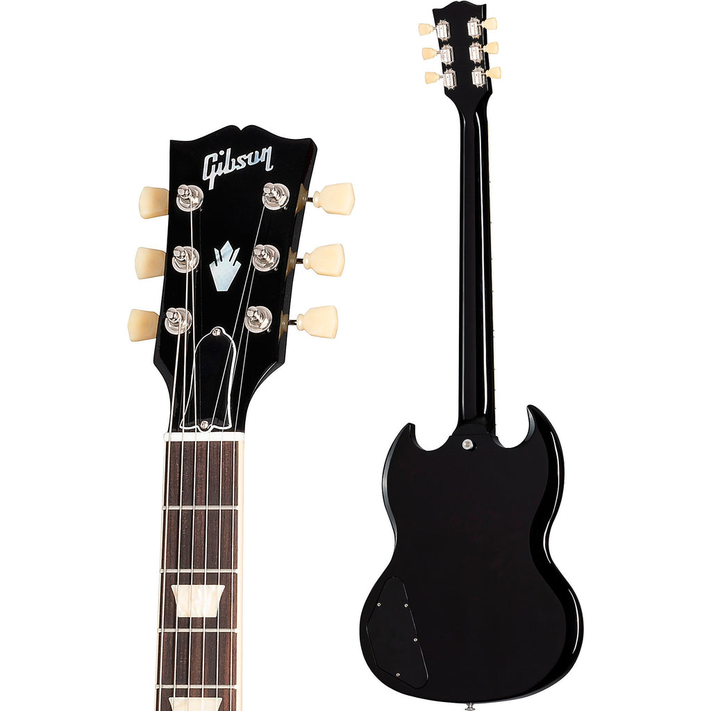 The SG Standard ‘61 returns to the classic design that made it relevant, played, and loved – shaping sound across generations and genres of music. In 1961, the Les Paul™ model was put on hiatus, and an all-new design evolved into what is today known as the SG™ or “solid guitar.” The Gibson SG Standard ‘61 retains the styling of the legendary original models from the early 1960s. It features a solid mahogany body with the classic double-cutaway SG shape, complete with the iconic deeply sculpted body scarfing and double horns that make this model instantly identifiable. The mahogany neck has a fast-playing SlimTaper™ profile and is capped with a bound rosewood fretboard that is equipped with 22 medium jumbo frets and acrylic trapezoid inlays. The fretboard has a 12” radius, so it’s comfortable for first-position chords, and lead lines played higher up the neck won’t fret out. The neck joins the body at the 22nd fret, ensuring easy access to its entire length, making the SG an ideal guitar for lead players. As with the earliest SG models, the SG Standard ’61 features a 5-ply teardrop-shaped pickguard. The nickel-plated hardware includes a classic-style ABR-1 Tune-O-Matic™ bridge and aluminum Stop Bar tailpiece that help contribute to the model’s excellent sustain. The SG Standard ’61 is equipped with smooth-turning Vintage Deluxe tuners with Keystone buttons and has a Graph Tech® nut. The pair ensure rock-solid tuning stability. The pickups are 60s Burstbucker™ humbuckers™ for a classic voice with added power and top end. The 2 volume and 2 tone controls feature audio taper potentiometers and are hand-wired with Orange Drop® capacitors. The controls are capped with black Top Hat knobs. The SG Standard ’61 delivers the legendary SG tone, outstanding playability, and American-made Gibson quality that have made the SG the choice of countless players around the world for decades. A Gibson hardshell case is also included.