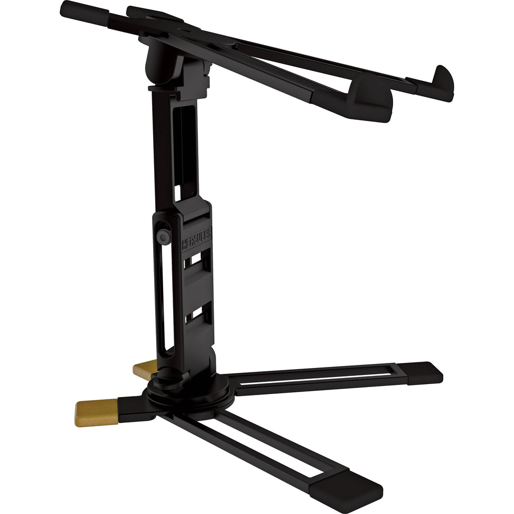The HERCULES Laptop Stand DG400BB features a one-piece folding design with multiple height and angle adjustments, making it easy to achieve the perfect setup for studio or stage use. Designed for strength and portability, it provides stable, worry-free support for laptops up to 10kg (22 lbs.) and includes a convenient carry bag for safe transport.