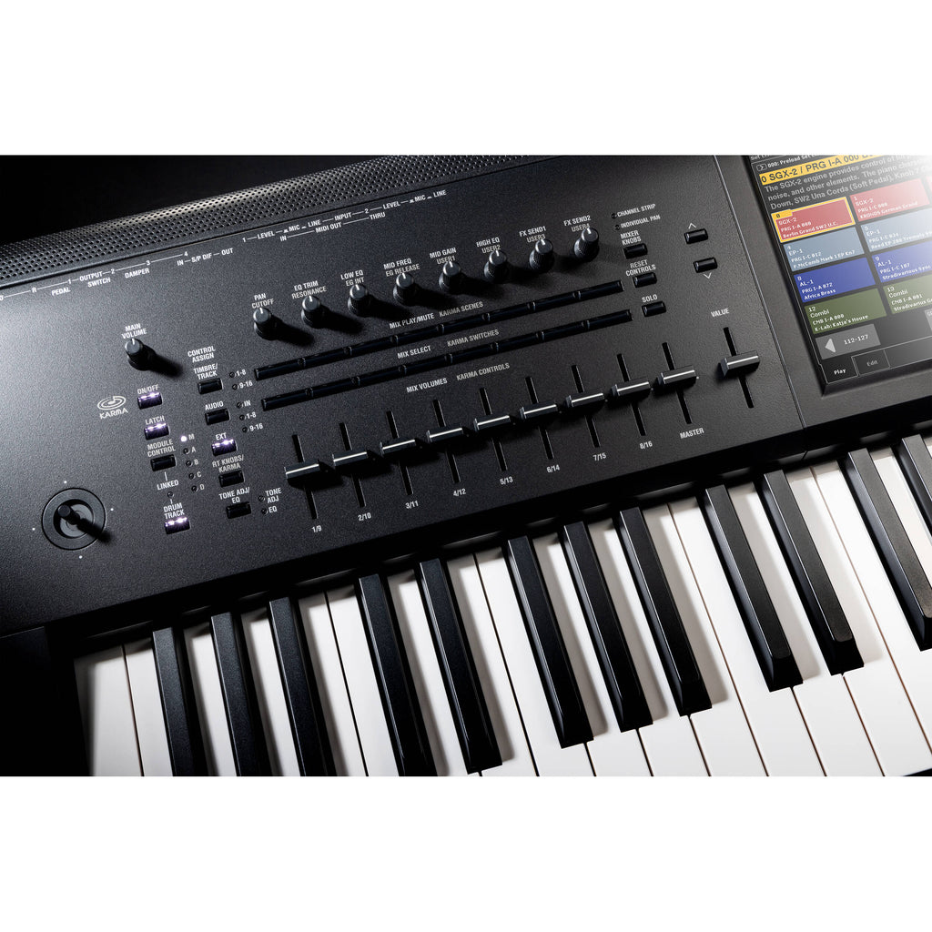 Long known for their easy-to-use workstation environments, Korg raised the bar again by loading Kronos with abundant hands-on controls. Starting with the large 8-inch color TouchView display, you'll find navigating through the Kronos environment to be refreshingly simple. Each contextual menu puts all of the most important controls at your fingertips, so you never have to dive in deep to get the results you want. A complete set of sliders, knobs, and buttons lets you adjust a wide range of parameters on the fly. Whether you're tweaking tones or mixing a complete song, you're sure to appreciate these extensive controls. On that note, there's a touch-activated ribbon and Korg's fantastic vector joystick onboard, providing you with a massive amount of expression. What's more, your Kronos includes Korg's next-gen KARMA technology, so you don't even need to touch any controls to get realistic real-time accompaniments that let you focus on your own performance.