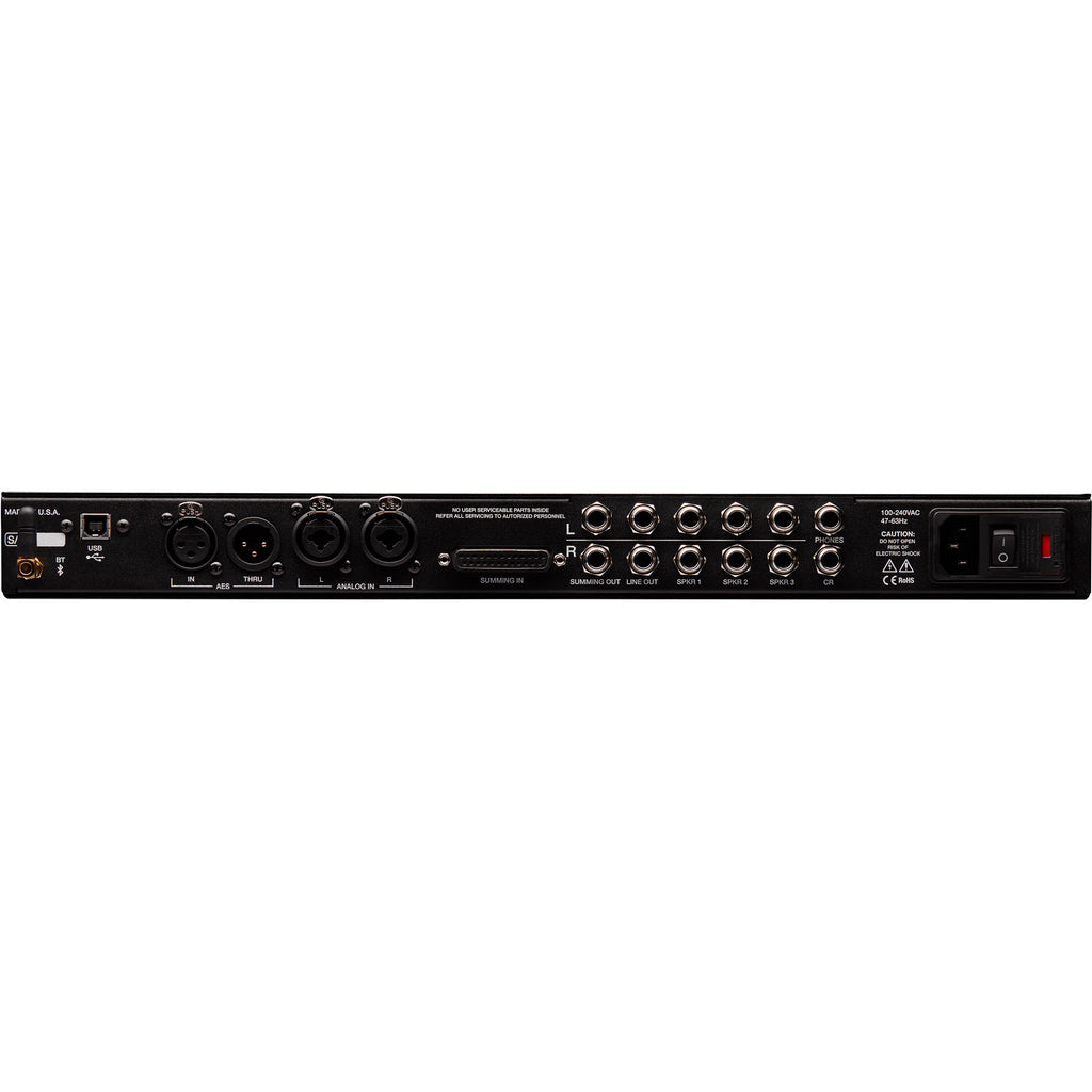 The D-BOX+ functions like the center section of a large-format console, offering extensive routing and switching for both analog and digital sources. Choose from five input sources — analog stereo, analog summing, USB, AES/SPDIF, or Bluetooth — with a single button press. Three stereo speaker outputs can be configured for mono or subwoofer integration, and Output 3 can also serve as an independent sub feed with its own level and mute control.