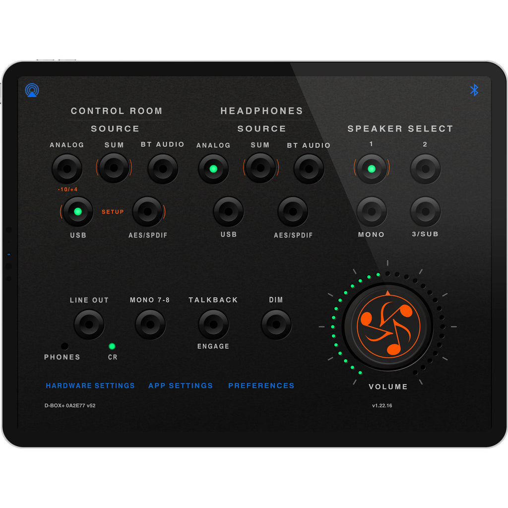 The new D-BOX+ Bluetooth app frees you from the studio chair, allowing complete control from any modern phone, tablet, or computer. Adjust monitoring sources, toggle talkback, control levels, switch speakers, and more — all remotely. Whether you're in the live room, on the couch, or down the hallway, the D-BOX+ app gives you total mobility and flexibility.
