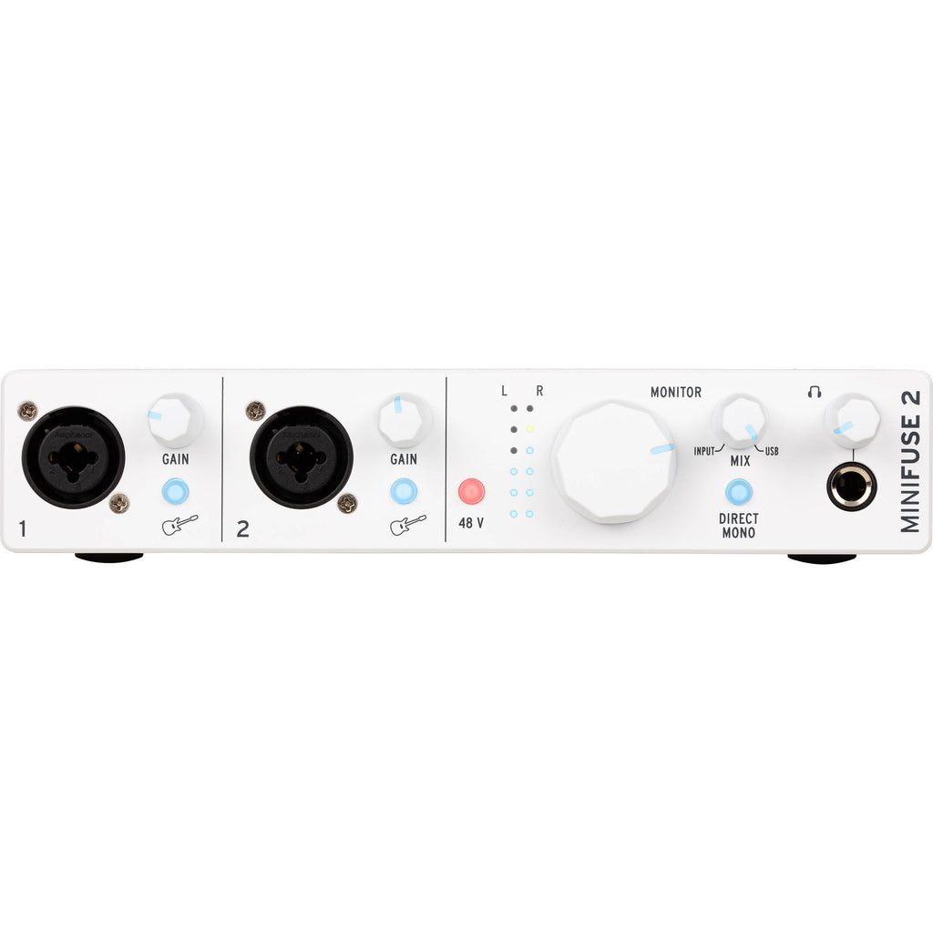 Part of Arturia’s award-winning AudioFuse range, MiniFuse 2 is an ultra-compact 2-in / 2-out USB audio interface designed for professional results in any environment. Featuring two high-quality preamps with support for sample rates up to 192kHz, it offers pristine sound and flexible connectivity. Front-panel headphone monitoring, zero-latency mix control, 5-pin MIDI DIN I/O, a built-in USB-A hub, and a virtual stereo loopback channel make MiniFuse 2 ideal for musicians, producers, and content creators alike.