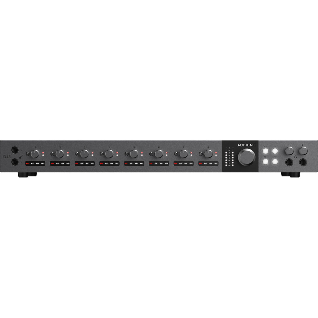 Packing eight state-of-the-art Audient console mic preamplifiers, cutting-edge 32-bit ESS converters, and all-new Switchable Analog Insert technology into a rugged, attractive all-metal 1U chassis, the iD48 seamlessly blends blazing audio performance with fluid ease of use. Add to that essential professional features like 16-channel ADAT expandability, eight analog inserts, advanced, customizable monitor control, a seamlessly integrated software mixer, innovative talkback implementation, dual sets of speaker outputs, and much more, and the iD48 is primed to supercharge your workflow while elevating the quality of your studio output.