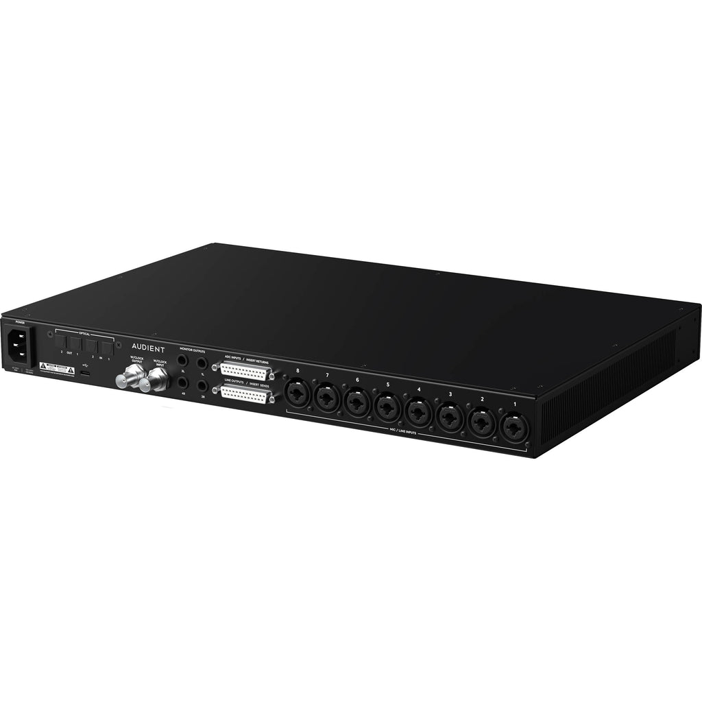 Audient’s top-of-the-line audio interface delivers the performance and value discerning audio professionals demand. This 24-in/32-out USB-C interface culls eight of the company's acclaimed console microphone preamps, two JFET instrument inputs, class-leading 24bit/96kHz converters, ADAT expandability, and a DSP mixer. The mic preamps feature the same circuit design from Audient's renowned ASP8024-HE console with vanishingly low noise and distortion, all while still maintaining the analog character you crave. And with 68dB of gain on tap, you can use your favorite low-output ribbon mic on subdued sources.