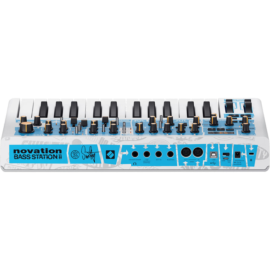 The Novation Bass Station II is a staple of synth-based music — a compact, digitally controlled analog monosynth that growls, howls, and invites infinite sonic shaping. The moment Music Experience's synth crew saw this Bass Station II Swifty Edition, they knew Ian "Swifty" Swift’s signature visual style — informed by his groundbreaking design work with the Mo' Wax and Talkin' Loud record labels and Straight No Chaser magazine — was all over it. Of course, the Bass Station II has always been more than what its name implies — it’s capable of producing scorching lead sounds and mesmerizing sonic textures. Novation has taken the Bass Station II even further, collaborating with Aphex Twin to develop the groundbreaking AFX mode, which is available via a free firmware update. By allowing users to assign a unique patch to every key, AFX Mode expands the Bass Station II’s sound design capabilities, transforming it into a powerful drum module, chord organ, and much more. Along with its sequencer and arpeggiator, the Bass Station II represents a perfect platform for generative music making and endless sonic exploration. Better yet, it's Swifty Edition livery makes the perfect visual inclusion for fans of Swift's synergetic UK electronica expertise.