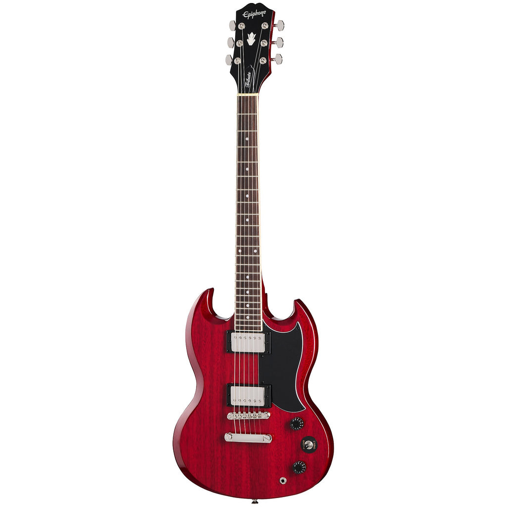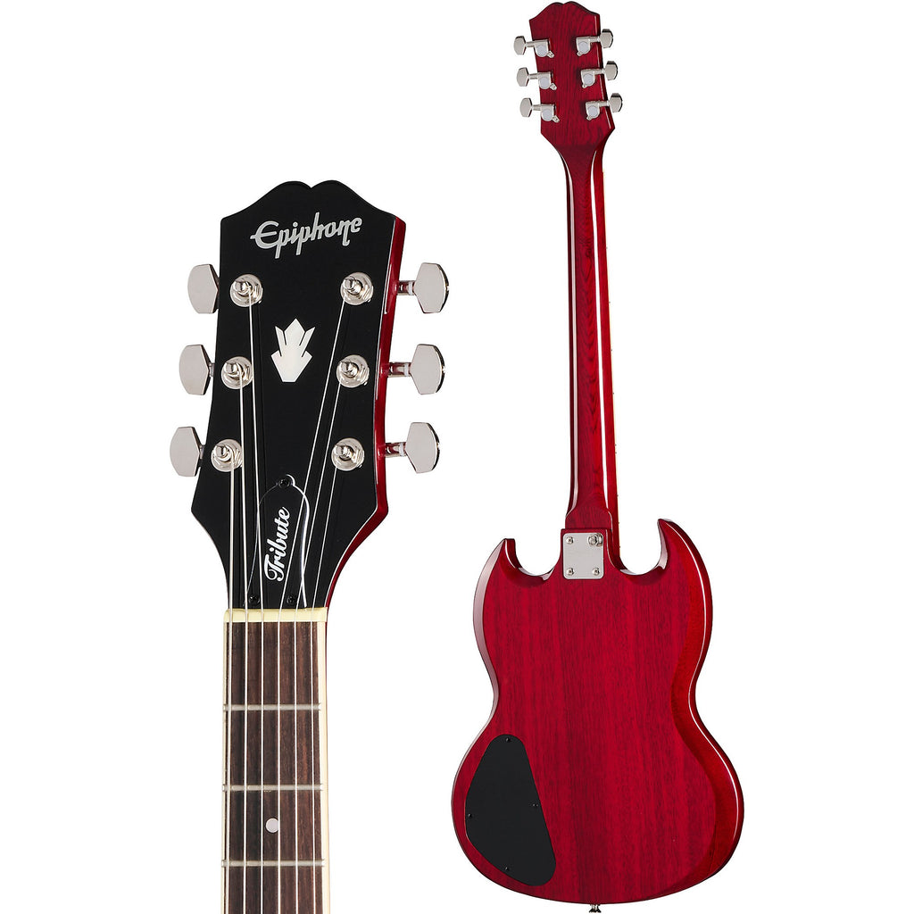 Epiphone proudly presents the new SG™ Tribute, an incredible, affordable introduction to the classic sound and vibe of the SG! The SG Tribute has all the signature features that have made this iconic instrument a worldwide favorite for decades. It boasts a mahogany body, powerful Epiphone 650R™ and 700T™ ceramic humbuckers™ with nickel covers, and a mahogany neck with a laurel fretboard. It's a no-nonsense axe with all the playability and tone you'd expect from an SG guitar. Available in multiple finish color options. Also offered in a left-handed version. An optional gig bag is also available.