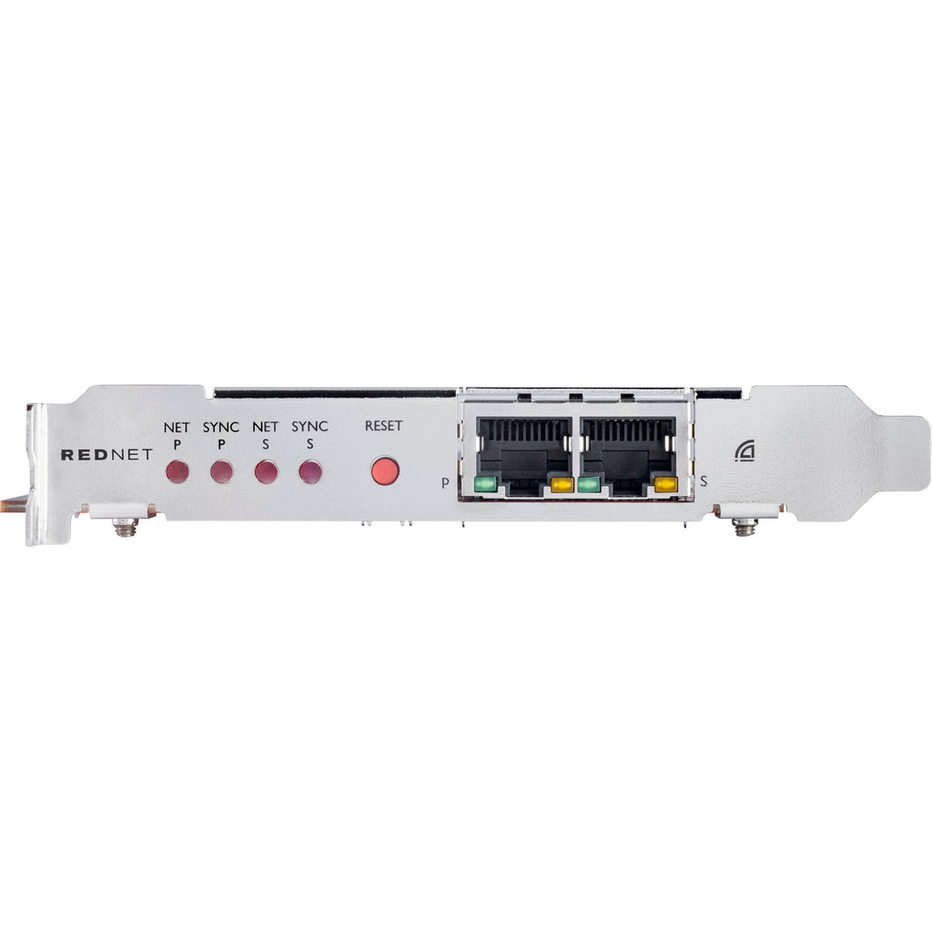 RedNet PCIeNX supports AES67, Dante Domain Manager, and is SMPTE ST 2110 compliant, which makes it perfect for broadcast deployment. The integrated network interface simplifies installation and connectivity, allowing for a single-cable connection for audio and network control. RedNet PCIeNX works with RedNet Control, which provides a single application for control and monitoring of all RedNet devices on the network.