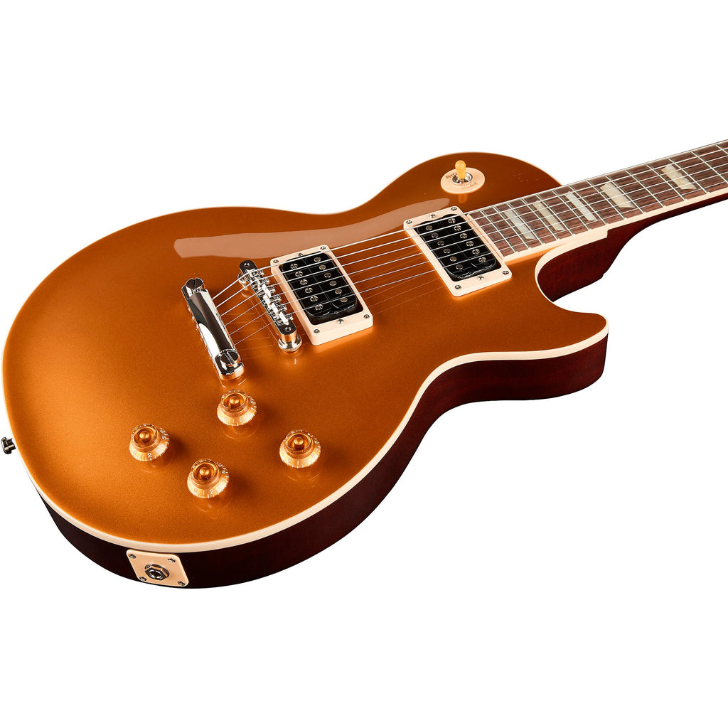 The Slash "Victoria" Les Paul Goldtop is everything a Les Paul aficionado could ask for, and it’s unequivocally worthy of its namesake. Inject your playing with incredible warmth and sustain, thanks to a resonant solid mahogany body that’s accented by an eye-catching maple top. You'll enjoy unbelievable playability, courtesy of a comfortable rosewood-capped Vintage '50s neck. And when you plug into your British stack, you’ll experience a mid-forward sustain and crunch by virtue of dual Custom Burstbucker Alnico II pickups — which any Slash fan is sure to recognize. The Slash Les Paul Goldtop also sports handwired electronics, color-coordinated hardware, and a bevy of special Slash-approved touches